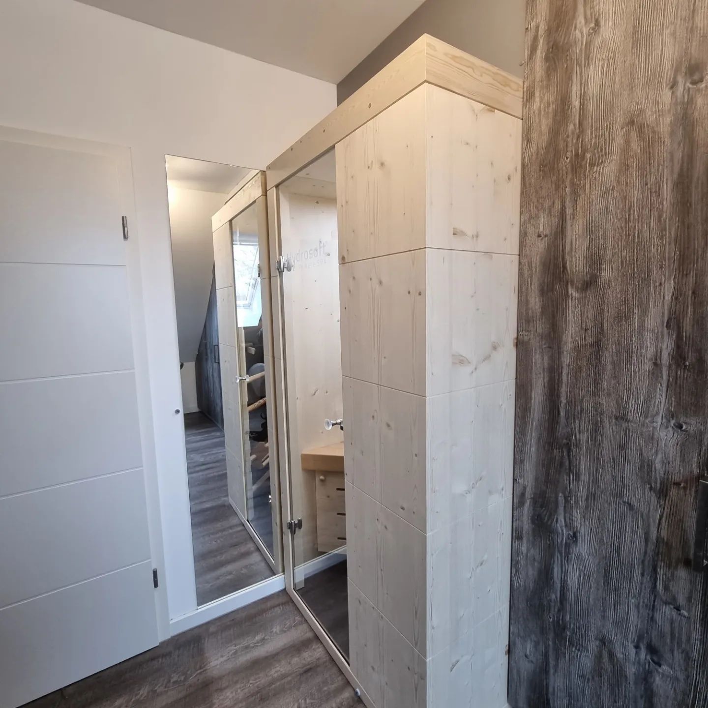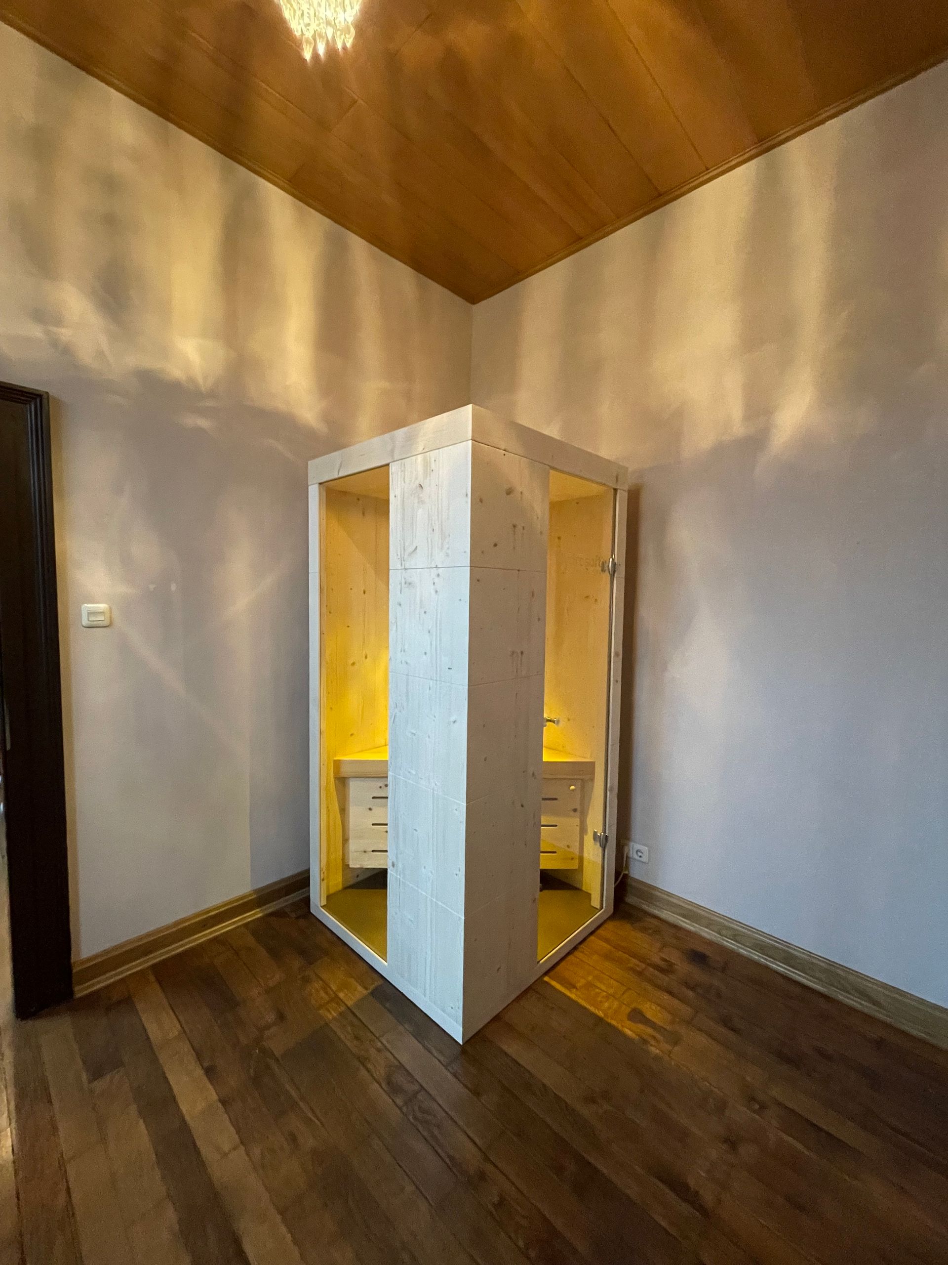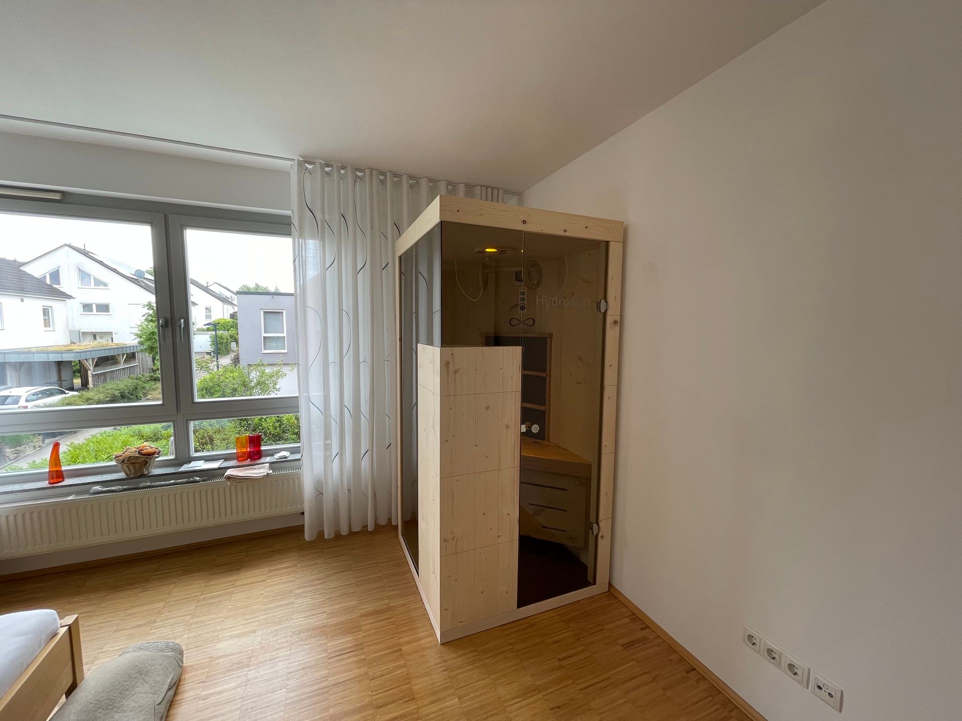 Einfache und schnelle Montage in Zimmer oder Bad - kein Wasseranschluss erforderlich - eine Steckdose genügt. Geringster Platzbedarf ab 0,86m2